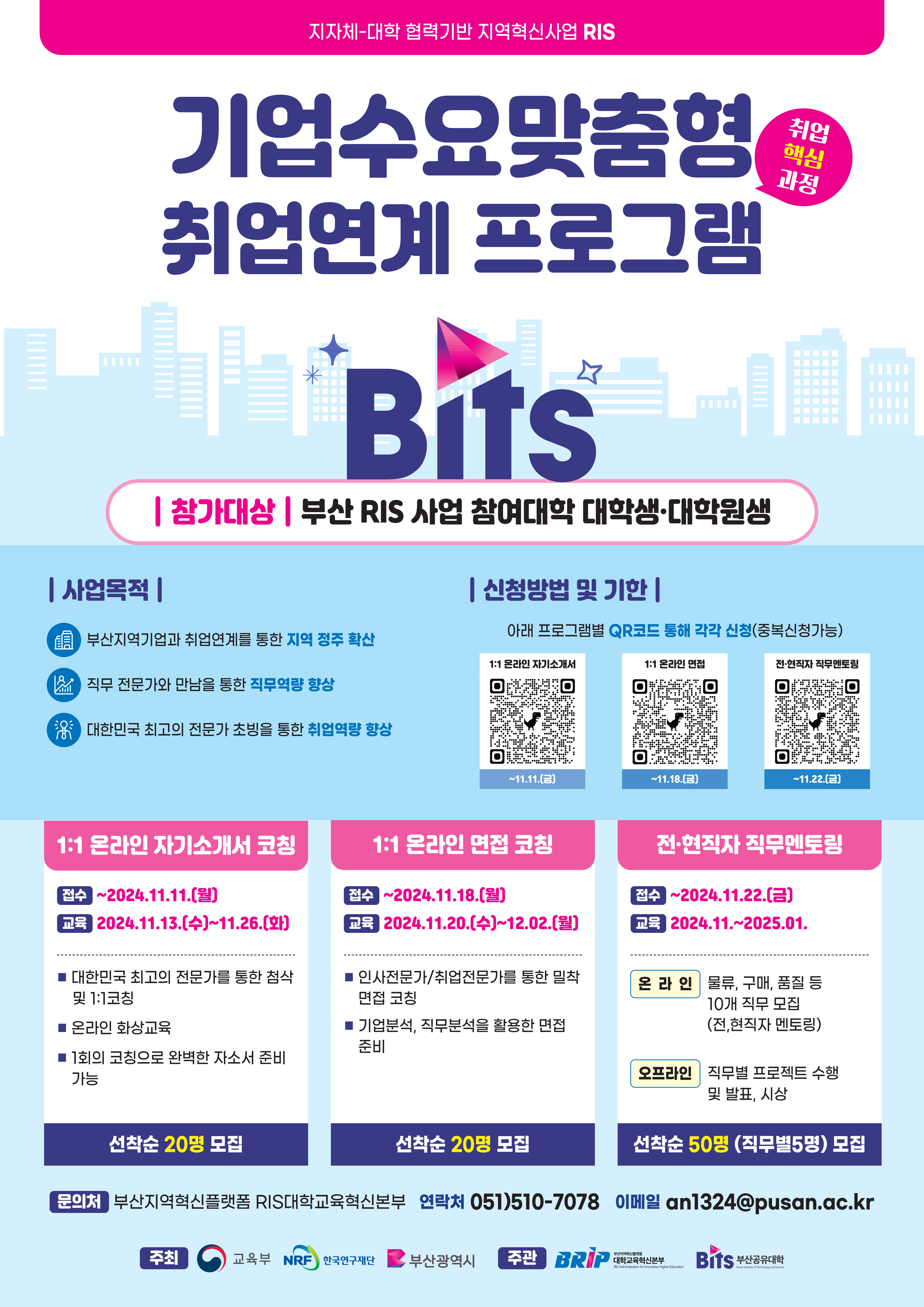 직무 멘토링, 자소서와 면접컨설팅부터 부산공유대학 융합전공 관련 산업체와의 취업 연계까지 토탈 취업 케어 솔루션 및 매칭 프로그램