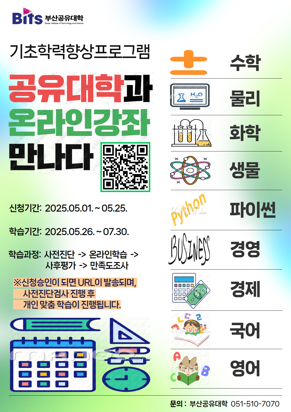 • 2025학년도 부산공유대학 기초학력 향상 프로그램(2차신청)